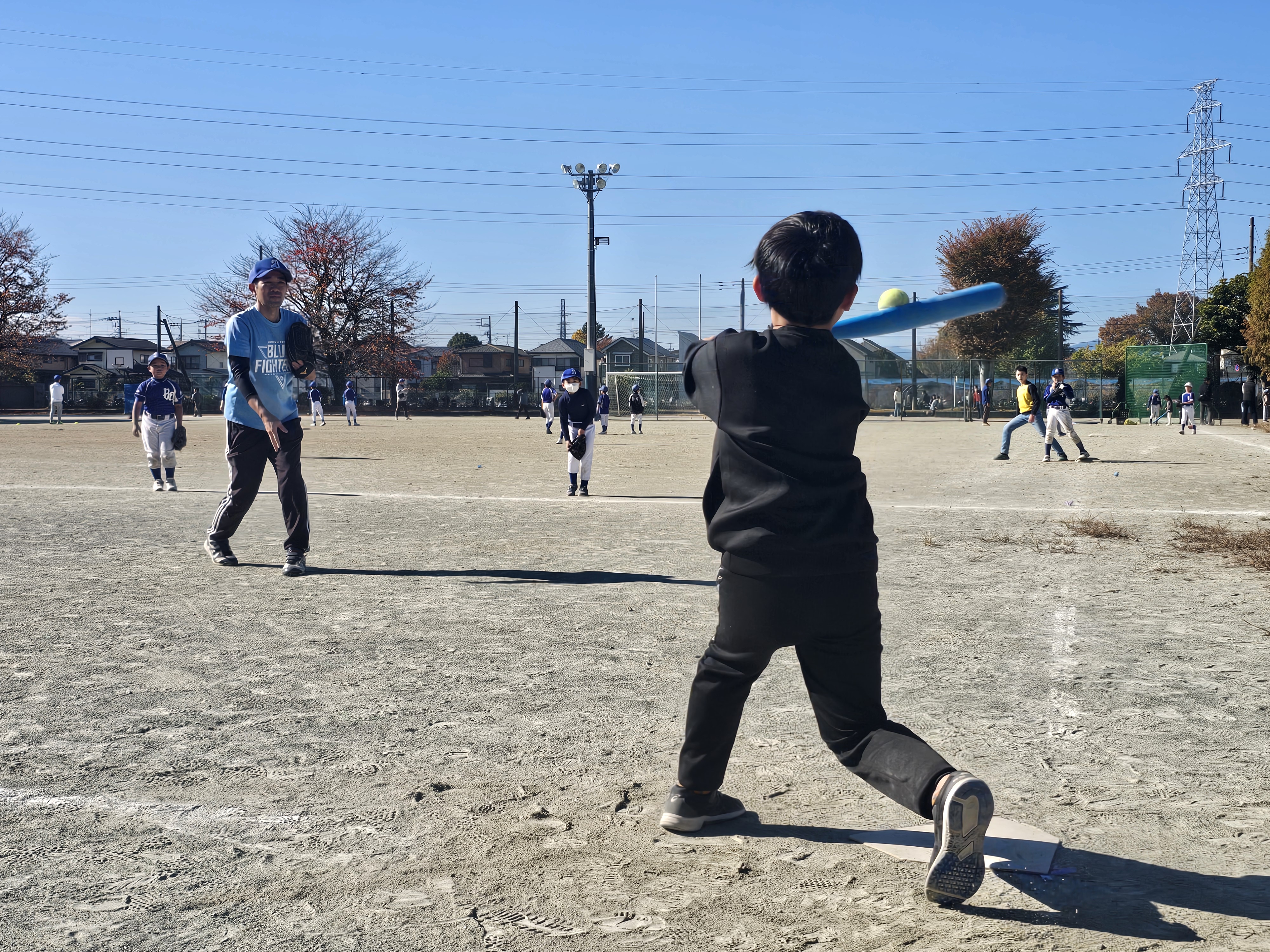 11/22(土) 今日は地域の子供まつりがありブルーファイターズは国分寺5中で体験会を行いました。
